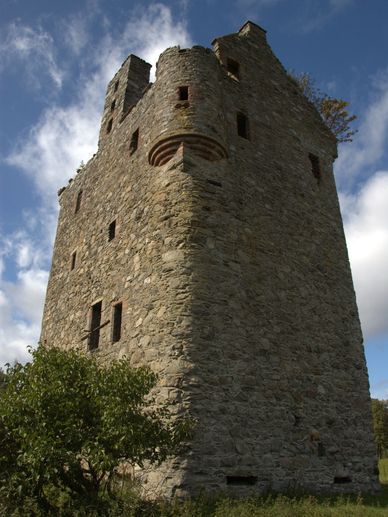 The present castle is on the site of a 14th-century castle. The castle belonged to the Lindsays of Crawford. It was designed to control Highland marauders. It was here that David Lindsay, 9th Earl of Crawford died in 1558. The present castle was built in the 16th century, and heightened in the early 17th century. The castle was abandoned in 1803.